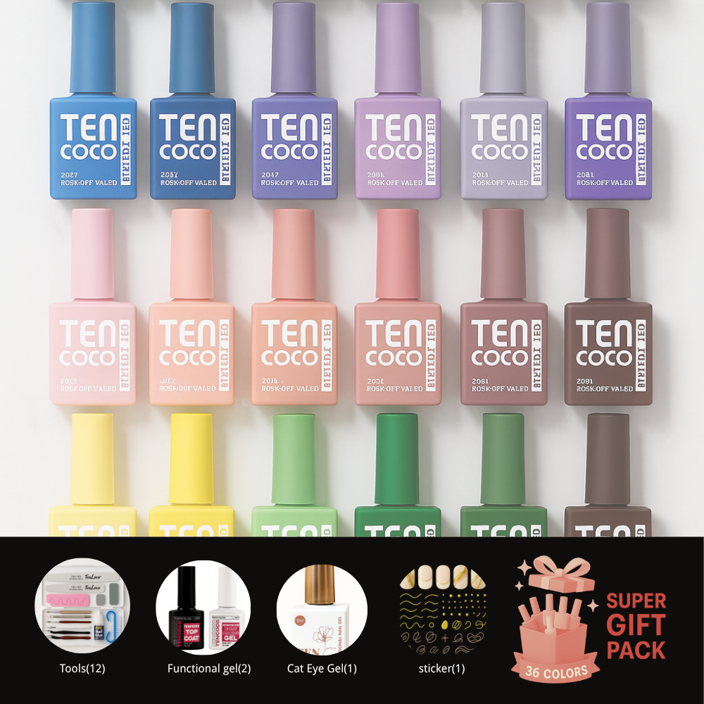 TENCOCO cross-border new product, a bottle of one-color phototherapy nail polish glue, and a 6-color nail polish glue set.