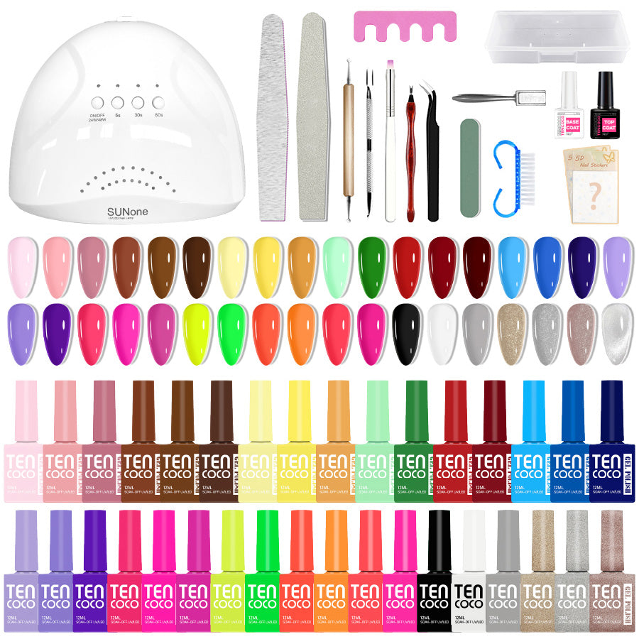Tencoco 35-Color Gel Nail Polish Set with Crystal Cat Eye Gel & 48W UV Lamp
